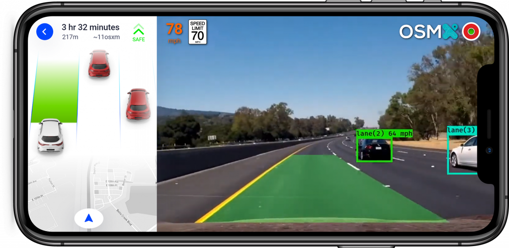 Drivers use the OSMX app as an in-car dash cam, recording GPS and high-quality 4K video and imagery data while on the road. The app runs on all modern smartphones, requiring no specialized hardware.